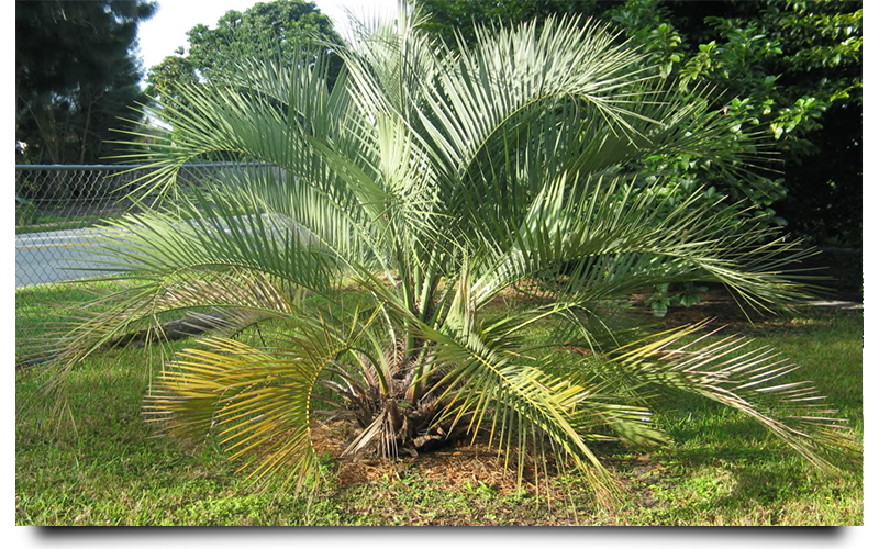 You can use an "Dwarf Sugar Palm" almost as you would a large, wide spreading shrub yet one with a decidedly tropical look. Long, large-leafed fronds with silvery undersides contrast well with the textures and colors of other plantings.